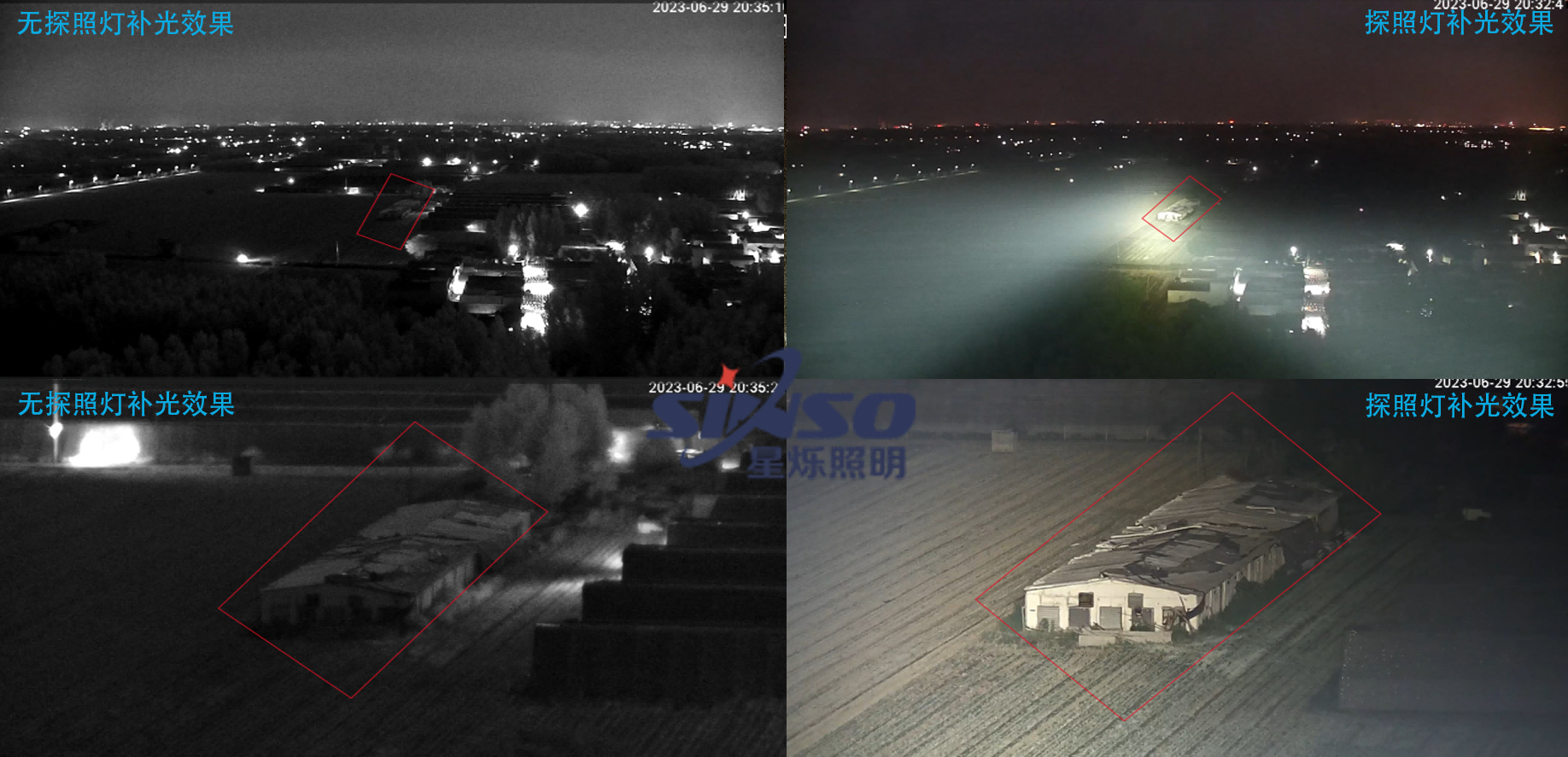 LED探照燈遠、中、近距離補光效果明顯,監(jiān)控區(qū)域的細節(jié)清晰可見。LED探照燈可以隨時關(guān)閉和開啟,不做補光燈使用,可以作為照明設(shè)備,也可以作為監(jiān)控威懾和驅(qū)趕非法目標的武器,一個產(chǎn)品多種用途。