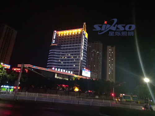廣西星爍照明工程有限公司承建了樓體亮化工程,在酒店樓體亮化照明設計施工之前,我們對所照樓體和照明的角度進行了充分的觀察和分析,從而確定了燈光照明的定位,進行了樓體亮化工程合理的規(guī)劃和布局,并且在照明設計施工時,增加了一些藝術元素,讓所照建筑物看起來更具有藝術美感和現(xiàn)代氣息。