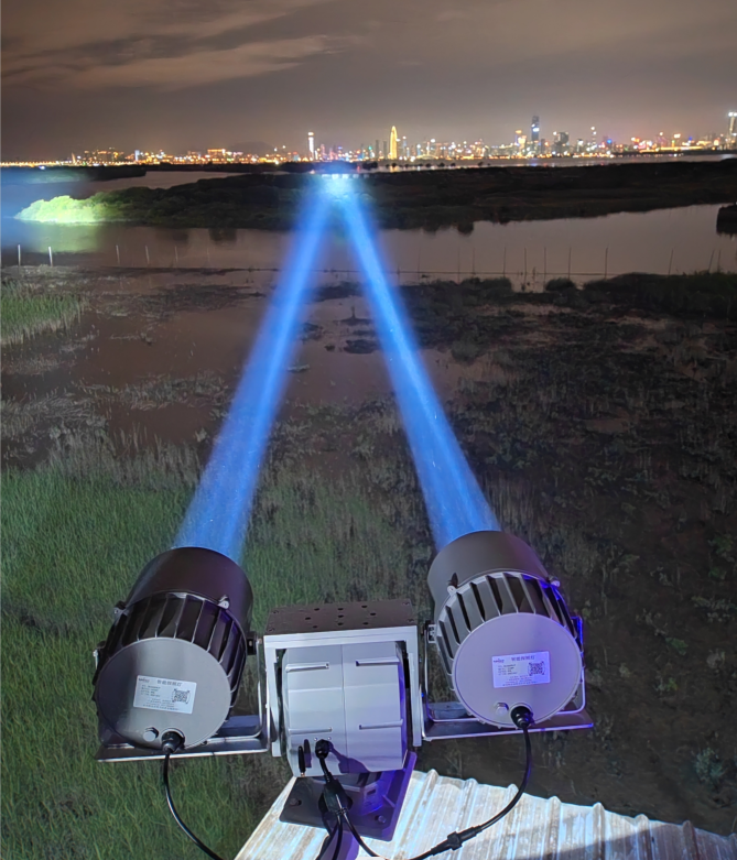 智能雷球探照燈系統(tǒng)配備了亮度高、射程遠(yuǎn)、照明均勻度好的超腦網(wǎng)絡(luò)探照燈,探照燈具備了水平360°與垂直90°的大范圍調(diào)節(jié),確保整個海面無死角盲區(qū);同時還提供了控制方向、開關(guān)燈、巡跡,預(yù)置位、自動巡點等自動化功能,可以設(shè)置探照燈在監(jiān)控區(qū)域內(nèi)自動巡航掃射或者手動控制,發(fā)現(xiàn),驅(qū)趕和威懾非法目標(biāo)。接入智能雷球探照燈系統(tǒng)平臺后可遠(yuǎn)程控制,系統(tǒng)將根據(jù)實際的照明需求,遠(yuǎn)程調(diào)節(jié)探照燈參數(shù),調(diào)用其相應(yīng)功能;對于雨霧天氣特別是夜晚無光照情況下,可以為監(jiān)控攝像機(jī)進(jìn)行照明補(bǔ)光,使得攝像機(jī)畫面更清楚更容易識別。