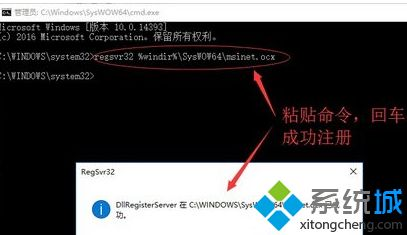 2、然后輸入regsvr32 C:\Windows\SysWOW64\mswinsck.ocx注冊(cè)即可