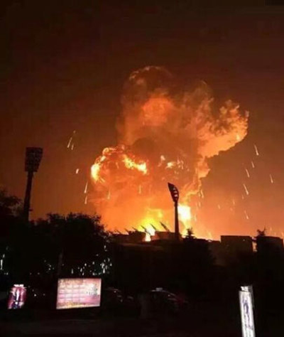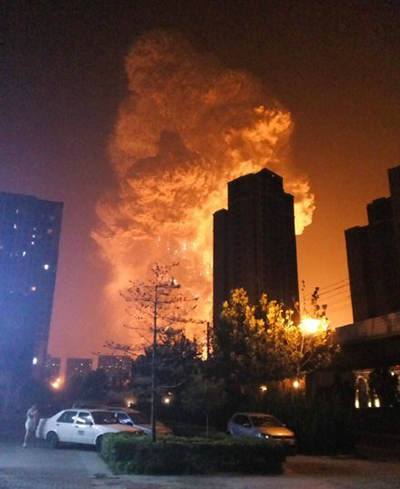 8月12日晚11時許,天津市塘沽開發(fā)區(qū)一帶發(fā)生爆炸事故,現(xiàn)場火光沖天。經(jīng)有關單位初步核查,事故已造成17人遇難,32名危重傷員,283人入院觀察治療。在滅火過程中發(fā)生2次爆炸,導致部分現(xiàn)場人員被困,目前仍在全力搜救。