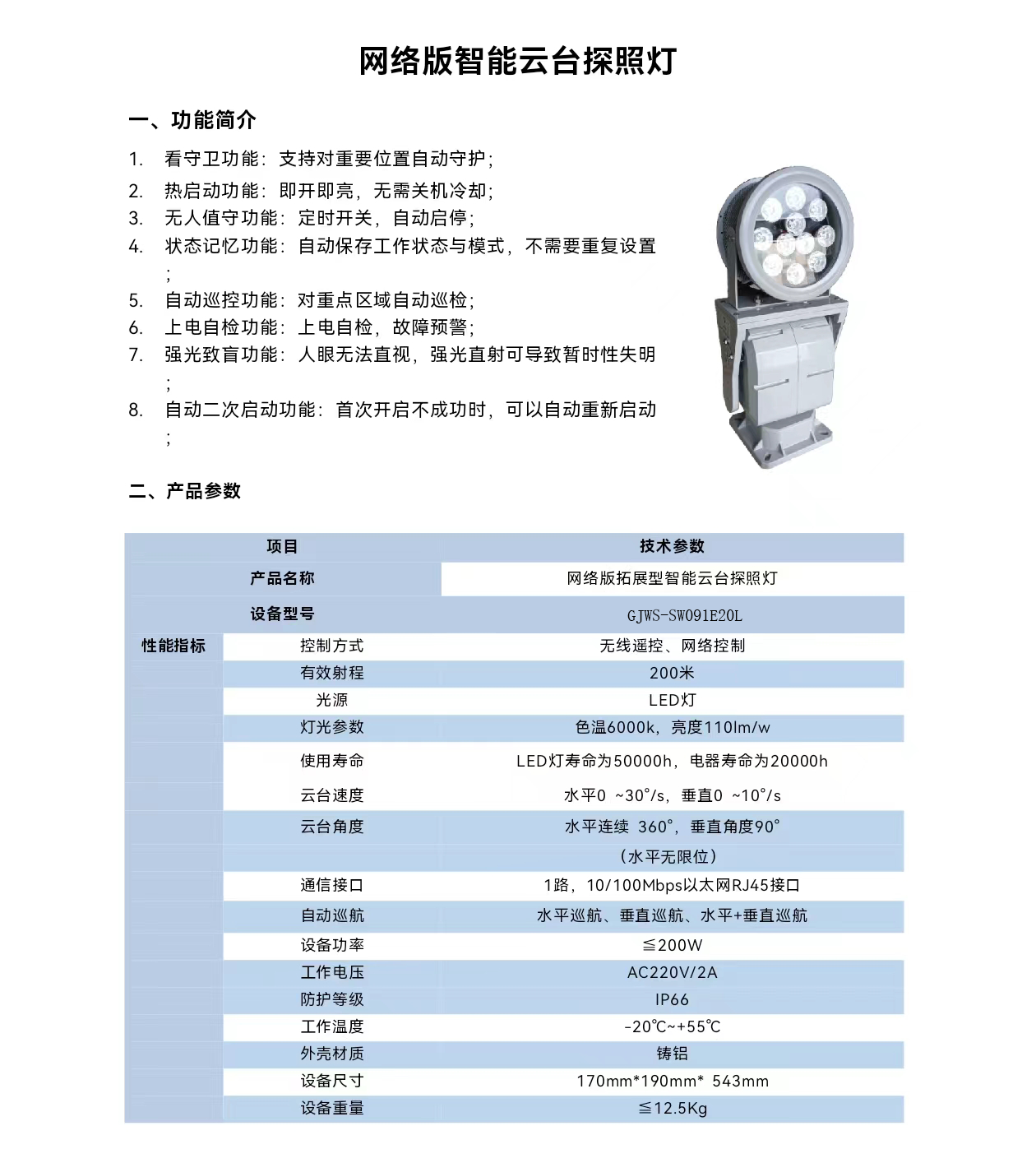 網(wǎng)絡(luò)智能巡控探照燈 崗監(jiān)衛(wèi)士 GJWS-SW091E20L-JQ