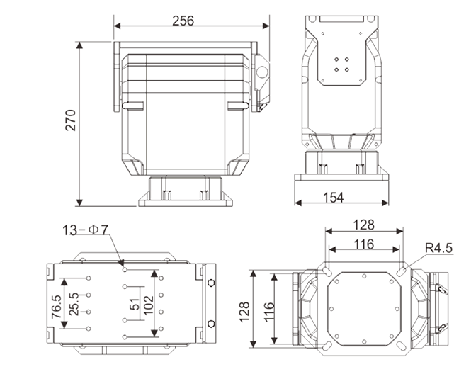 方位0~360°連續(xù)旋轉(zhuǎn);垂直+20°~-60° |