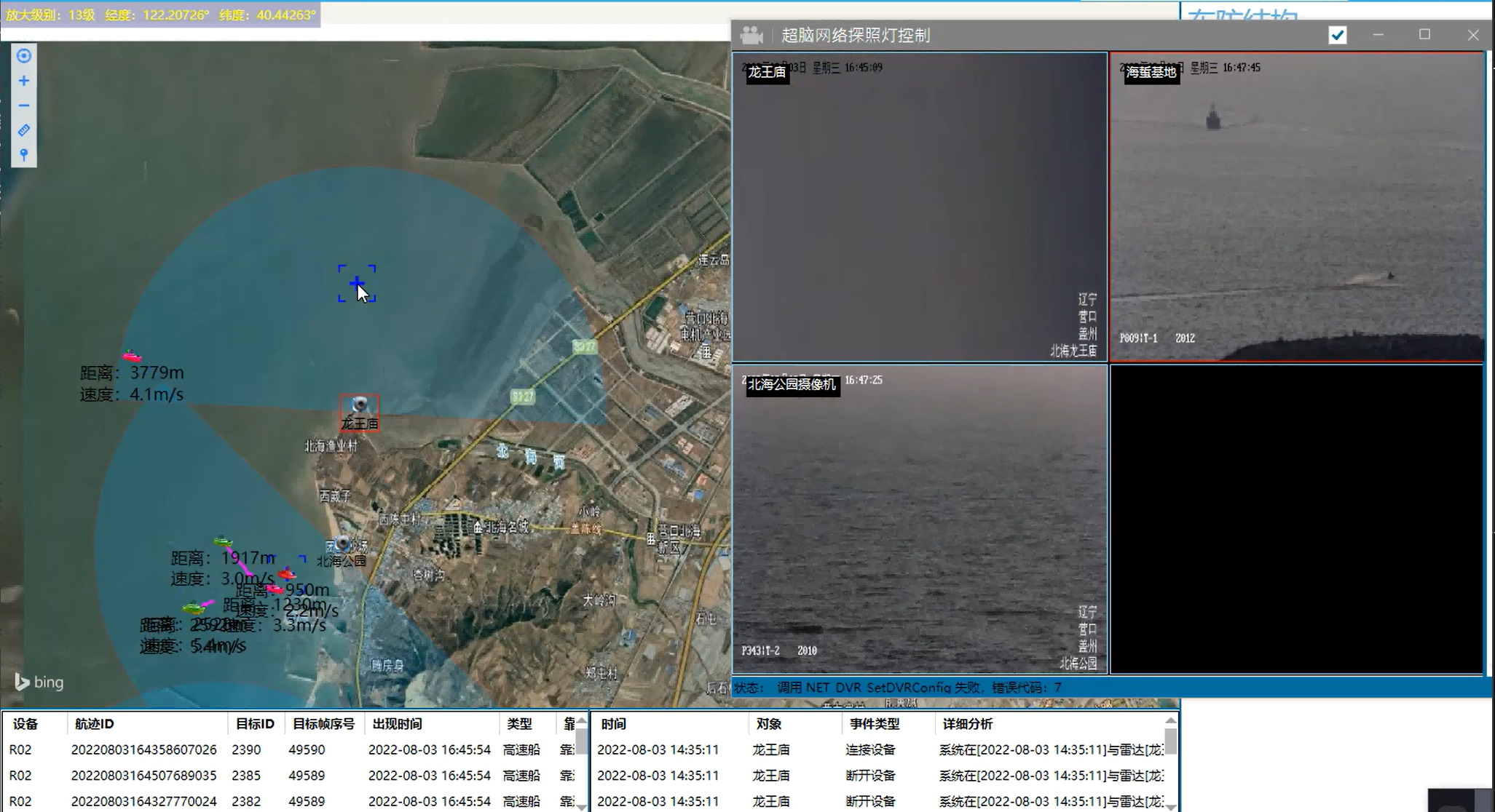 當有可疑船只或人員進入?yún)^(qū)域可快速發(fā)現(xiàn),系統(tǒng)會自動預警,雷達隨即聯(lián)動攝像機和探照燈對目標進行跟蹤,報警信息發(fā)送到值班室,提醒值班人員觀察警情,在確認警情性質后,可以及時向養(yǎng)殖場喊話,或者通過超亮探照燈和云廣播喊話對其進行驅趕,再進行報警、抓捕準備等防衛(wèi)措施。并提供違法證據(jù)記錄。該系統(tǒng)適用于全天候的應用場景,在白天、黑夜甚至霧霾等惡劣天氣下能夠探測到十幾公里范圍內(nèi)的目標,并獲取清晰的圖像,可有效防止偷盜事件的發(fā)生,為海上養(yǎng)殖場的安全運行提供保障。