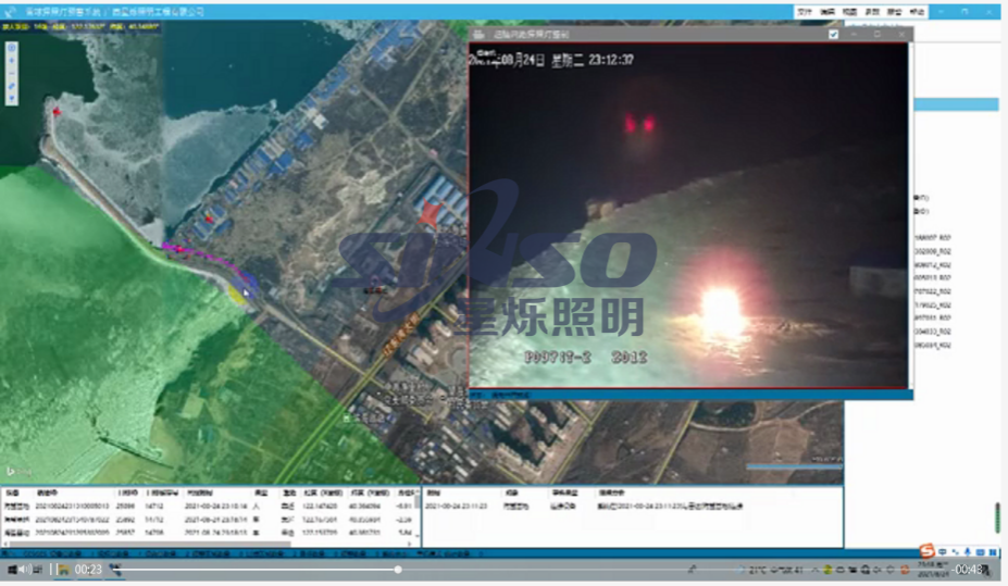 設(shè)計(jì)安裝該系統(tǒng),預(yù)期目的是為了提高夜間攝像機(jī)拍攝能力,達(dá)到2000米外能看清船舶,通過雷達(dá)探測(cè)到進(jìn)出港的船舶,引導(dǎo)高倍攝像機(jī)拍攝到船舶并記錄下船號(hào)。
